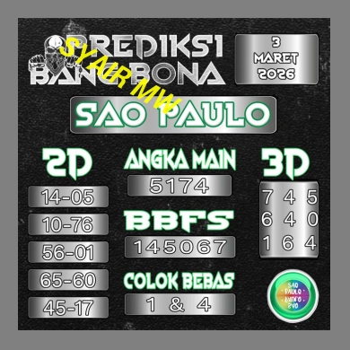 SYAIR PREDIKSI KELUARAN SAO PAULO, 3-Mar-2026
